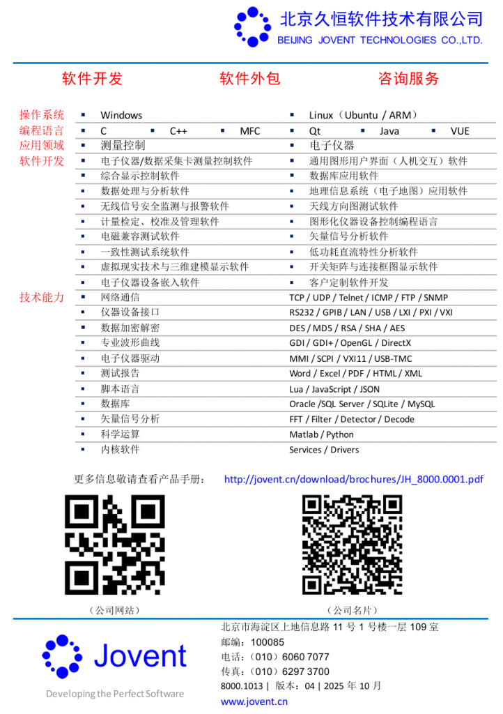 北京久恒软件技术有限公司为客户提供仪器及测试测量领域的软件外包服务,欢迎下载观看北京久恒软件技术有限公司的业务简介(Fly Sheet):